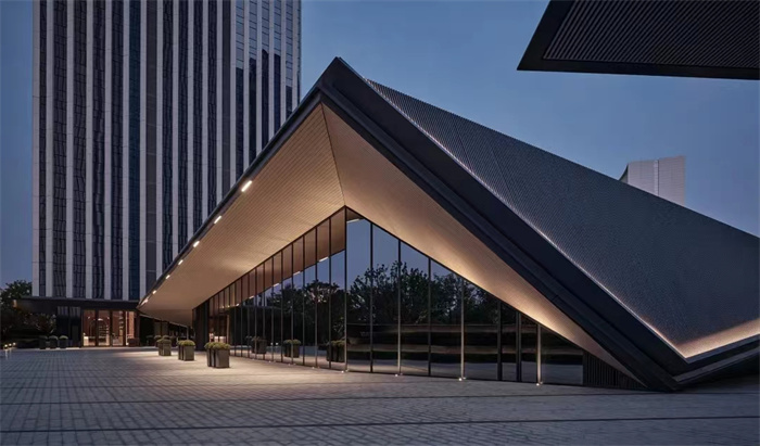 塔楼之上,细密加工的玻璃幕墙与冰裂纹陶板,在光与影的映照中,营造出诗意的、雕塑般的空间感。折叠式公园的设计极具现代感和力量感,与修建周围的景观交叠互连,泛起出条理富厚的自然景致。行走于人行步道之上,明确无与伦比的景观视觉盛宴。